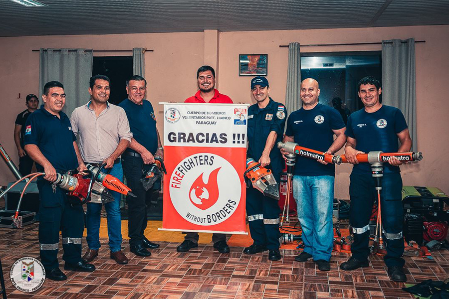 The Firefighters Without Borders Foundation donates a large container of technical rescue, medical and personal protective equipment to the Volunteer Firefighters of the Presidente Franco Fire Station in Paraguay. The donation includes 5 sets of Holmatro rescue tools consisting of hydraulic spreaders, combi tools rams, pumps and hoses.