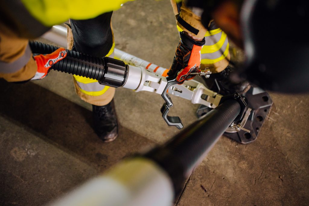 - Acople fácilmente la abrazadera a un puntal y agregue un segundo puntal con el limitador de tracción para crear un soporte de bloqueo de movimiento