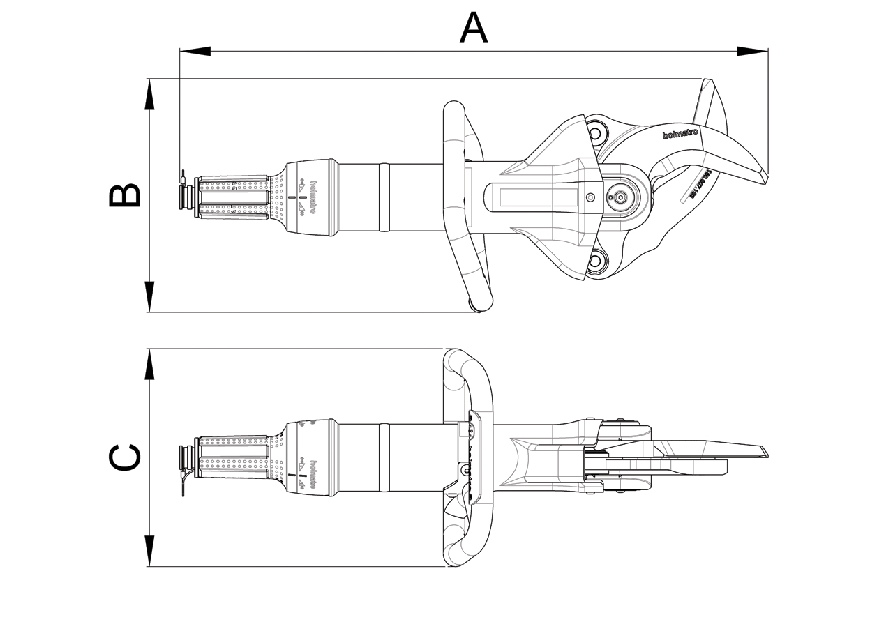New Car Technology Inclined Cutter - 5000 series. Compact lightweight model, developed on the basis of practical application. With inclined cutting jaw for more ergonomic cutting above waist height or low on the car and to reduce the effect of tool movement towards the patient (e.g. when making a relief cut in the A-pillar).